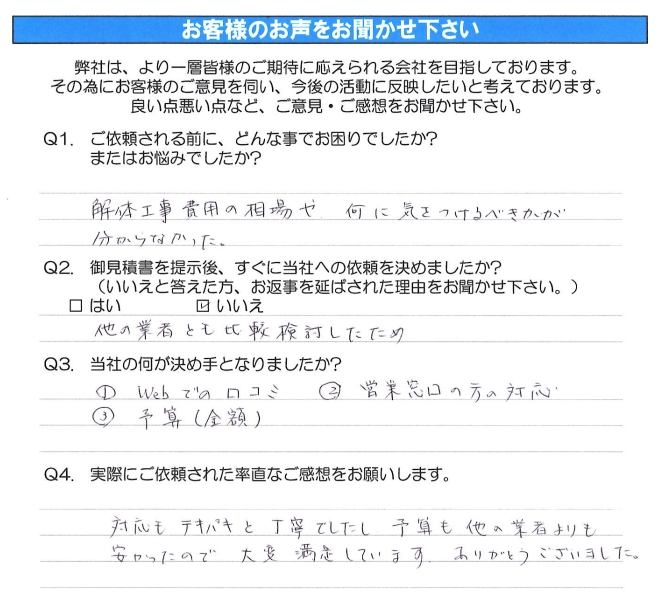 対応もテキパキと丁寧でしたし、予算も他の業者よりも