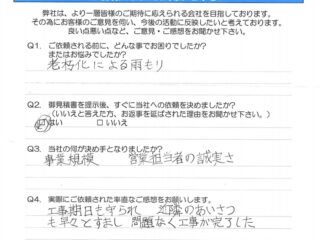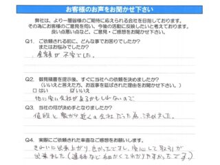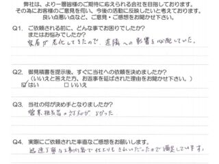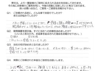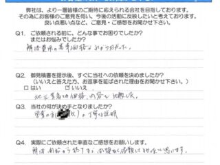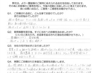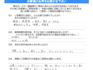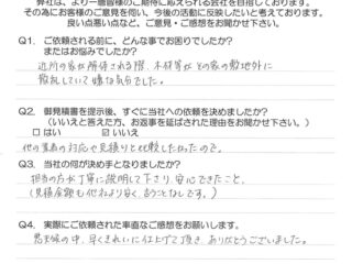 営業さんの電話対応、近所の配慮等確実なご対応に大変感謝しています