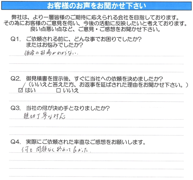 実際にご依頼されていかがでしたか?感想をお聞かせください。