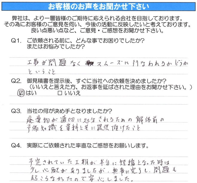 - 実際にご依頼されていかがでしたか?感想をお聞かせください。