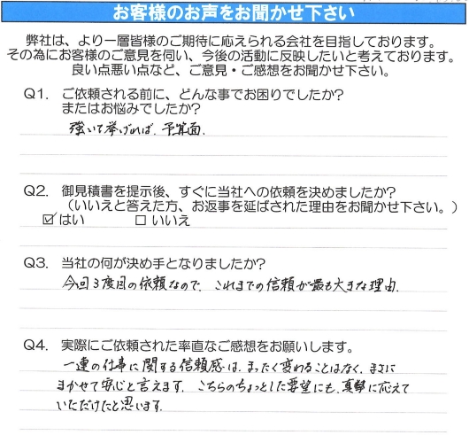今回3度目の依頼なので、これまでの信頼が最も大きな理由