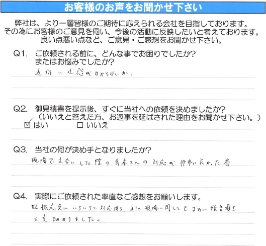 - 実際にご依頼されていかがでしたか?感想をお聞かせください。