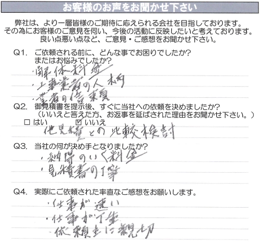 青木工業の何が決め手となってご依頼しましたか?