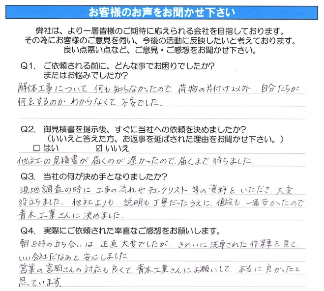 解体工事について何も知らなかったので、荷物の片付け以外、