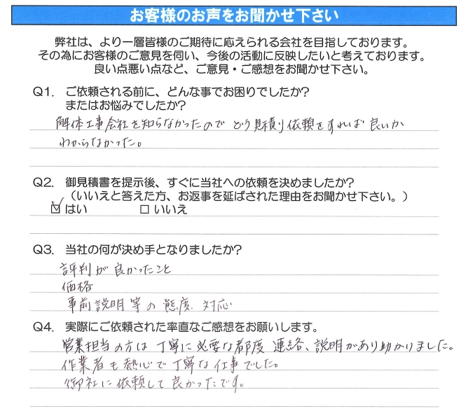 解体工事会社を知らなかったので どう見積り依頼をすれば良いか