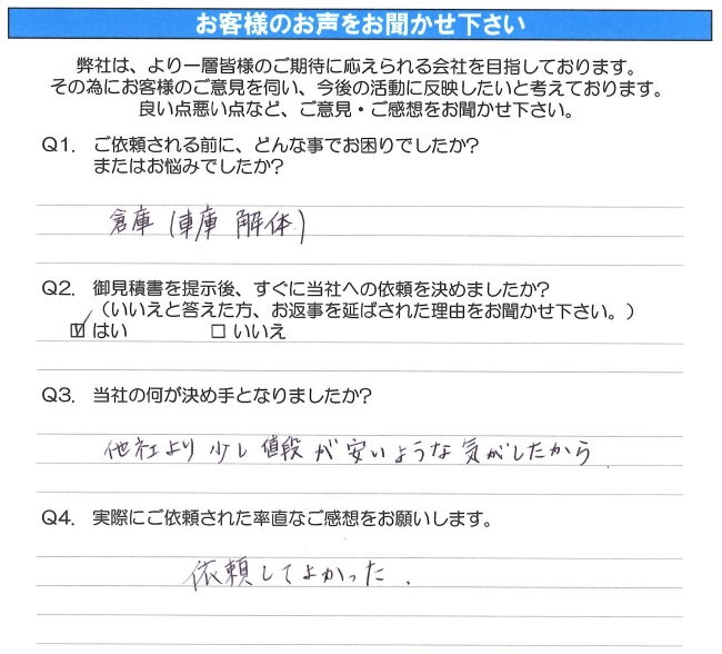 - 実際にご依頼されていかがでしたか?感想をお聞かせください。