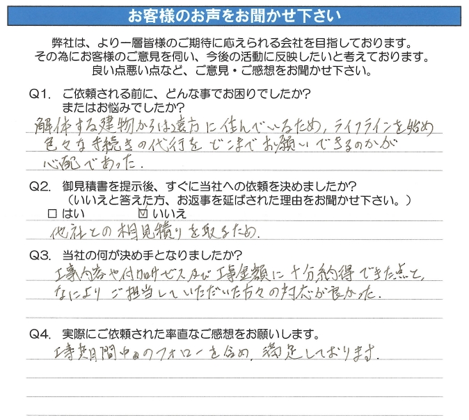 - 実際にご依頼されていかがでしたか?感想をお聞かせください。