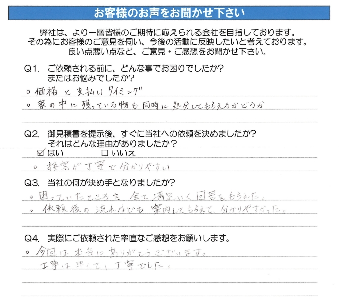- 実際にご依頼されていかがでしたか?感想をお聞かせください。