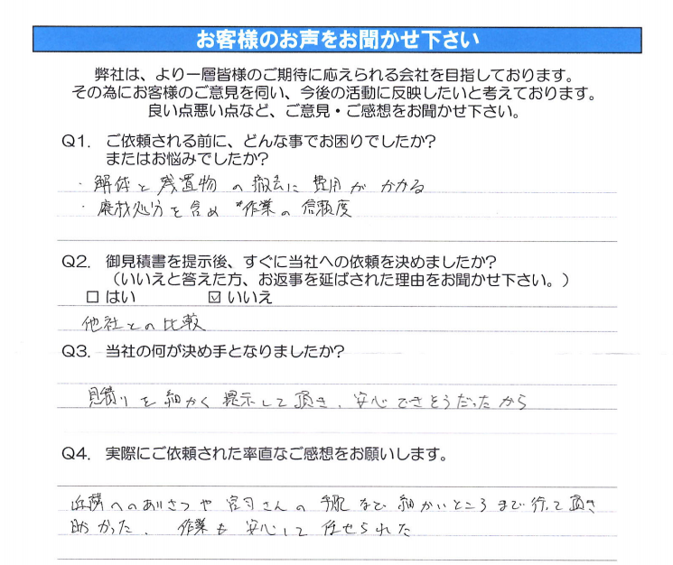 - 実際にご依頼されていかがでしたか?感想をお聞かせください。