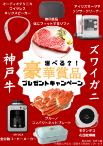 選べる?!豪華賞品プレゼントキャンペーンを実施中です。