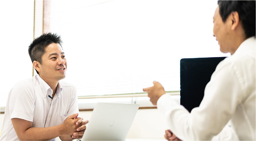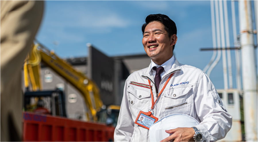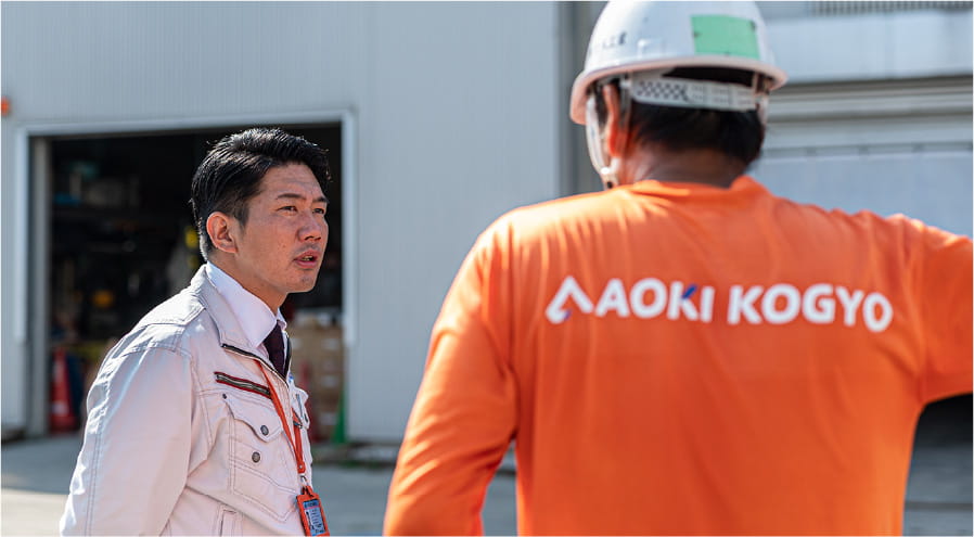 青木工業品質の向上に教育面では業務マニュアルを充実させ、個々の能力を高められていると自負しています。各現場においても上司や先輩が近くにいる環境を整備し、疑問点・不明点はすぐ聞けるように。社会人としてのモラルやマナーはもちろん、お客様の不安・懸念を解消するための知識向上、細部までの気配りもティーチング。それだけではなく、挑戦させ、考えさせ、自発性を高めることも重要視しています。また、コミュニケーションも大切に。個々の経験や知識を共有し、直面している問題を皆で解決していきます。さらには恋の相談をし合う社員も(笑)。愛を大事にする青木工業、社員にも本物の愛で接しています。