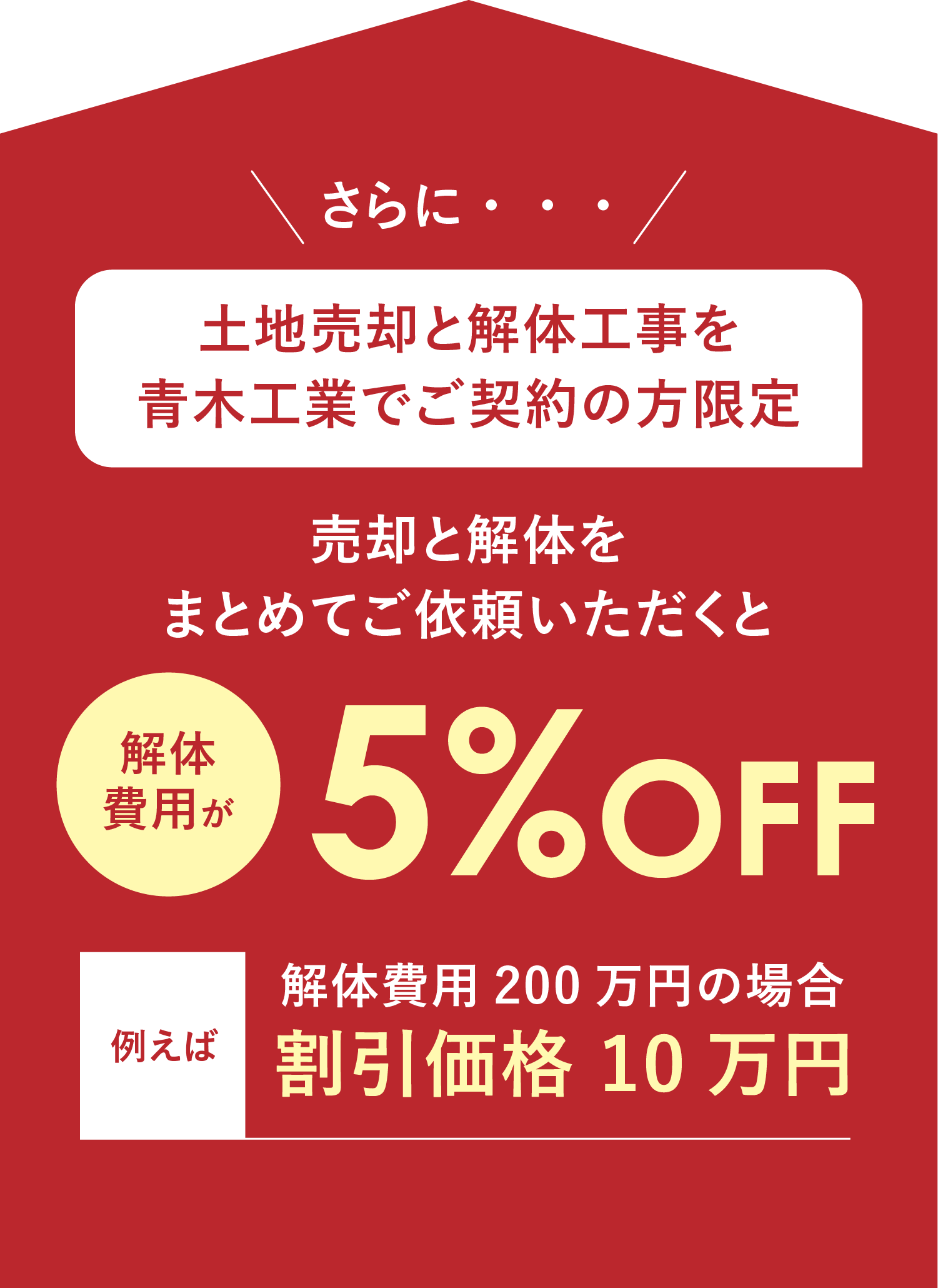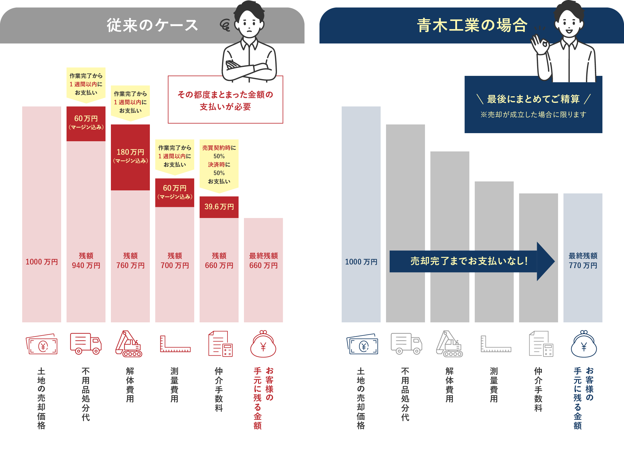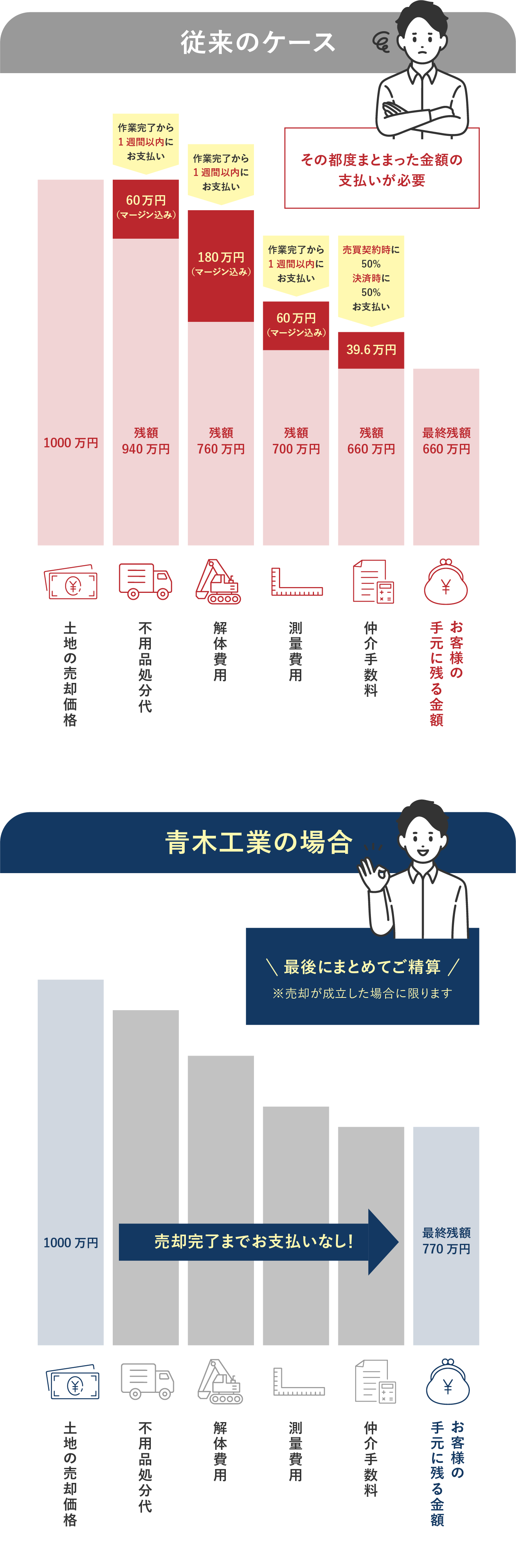 解体費用は土地の売却代金から差し引くため、工事途中での支払いは一切不要です。