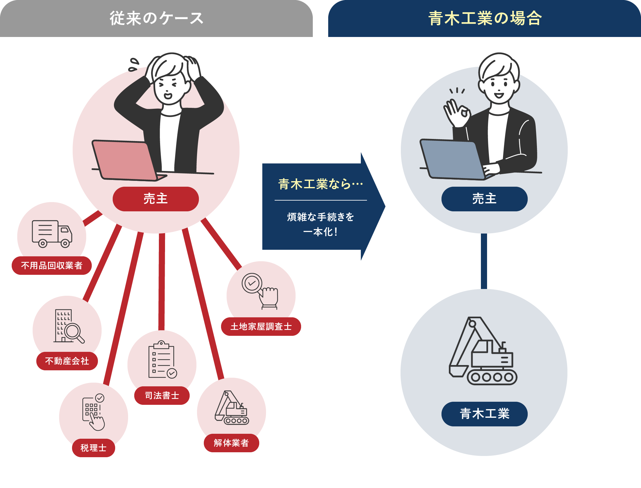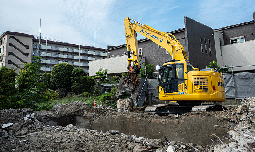 解体工事は工事そのものだけでなく、行政への届出や手続きなど分かりづらい点が多いので、お客様が不安に感じる部分も多いかと思います。青木工業では、そうした手続きや調整についても可能な限りサポートし、安心してお任せいただけるよう心がけております。