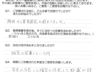 親切に相談に乗って頂き、解体もきれいにしていただいて満足しています