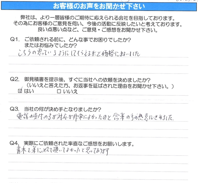 こちらの思っているようにしてもらえるか、と価格にまよいました