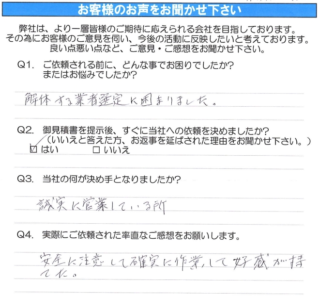 解体する業者選定に困りました。