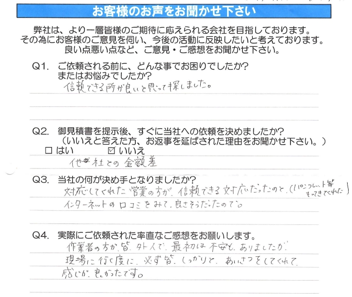 - 実際にご依頼されていかがでしたか?感想をお聞かせください。
