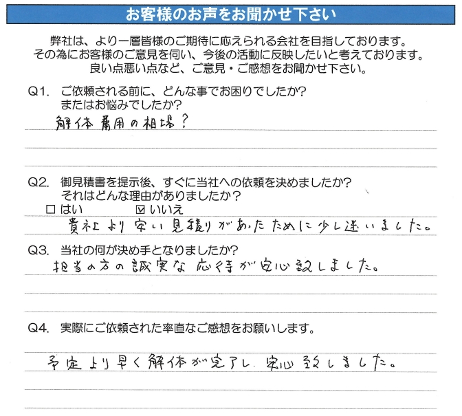 - 実際にご依頼されていかがでしたか?感想をお聞かせください。