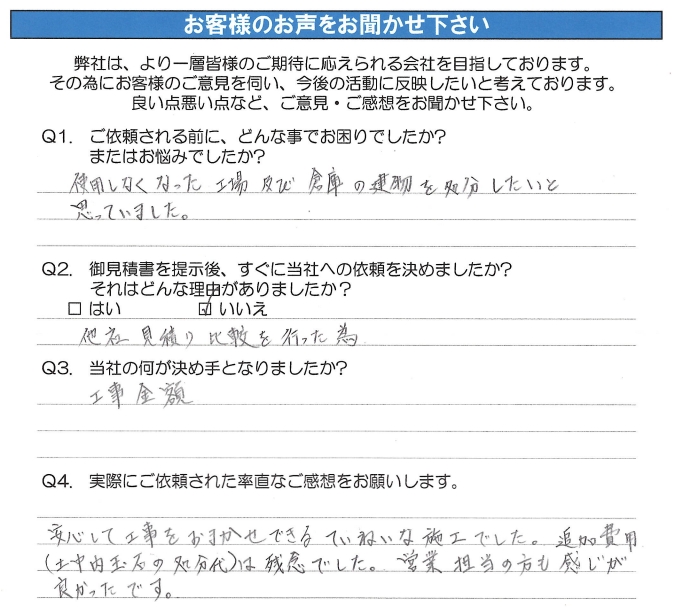 - 青木工業の何が決め手となってご依頼しましたか?