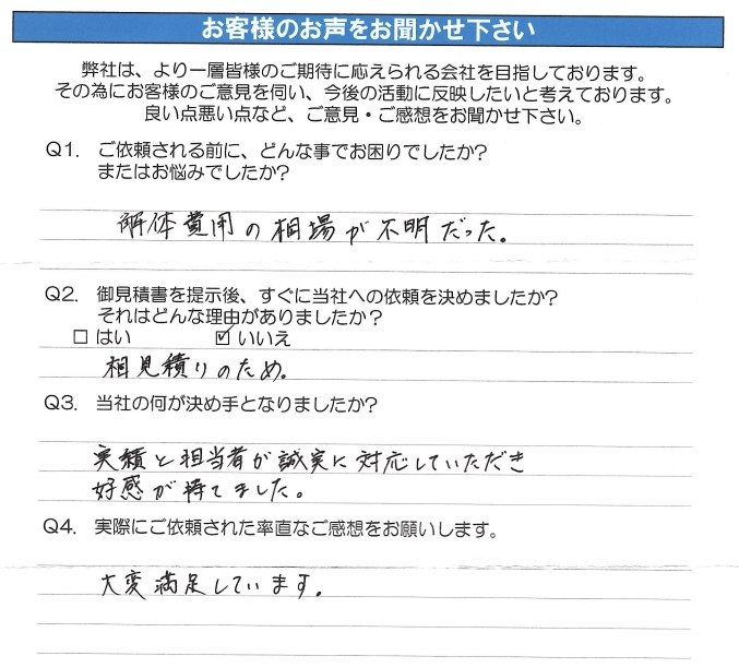 - 実際にご依頼されていかがでしたか?感想をお聞かせください。