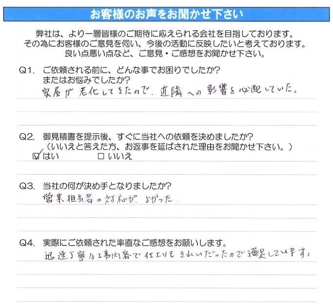 迅速丁寧な工事内容で仕上りもきれいだったので満足しています。